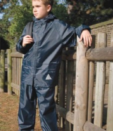 A tough little waterproof suit packed into its own zip closing bag; ideal for keeping dry and clean dyring wet outdoor activities and the school run.