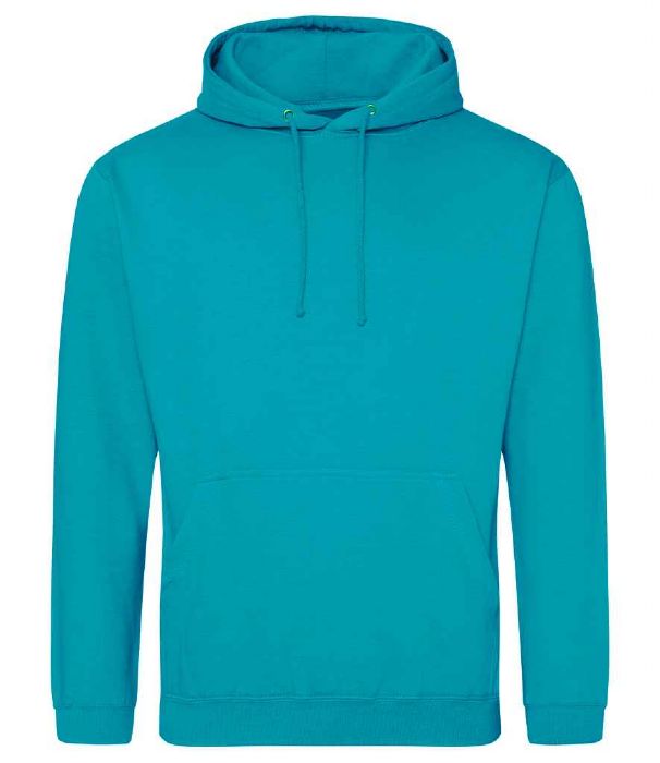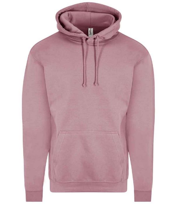 Drop shoulder style hooded sweatshirt with double fabric hood and kangaroo pouch pocket. Ribbed cuffs and hem and twin needle stitching for greater strength.