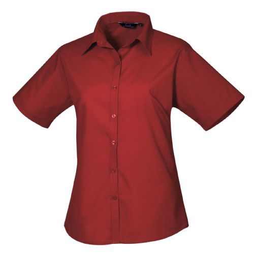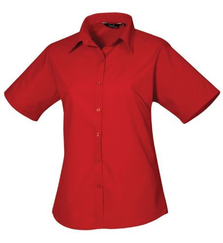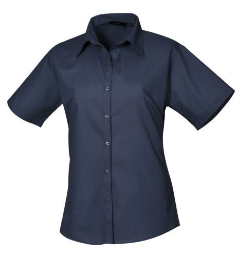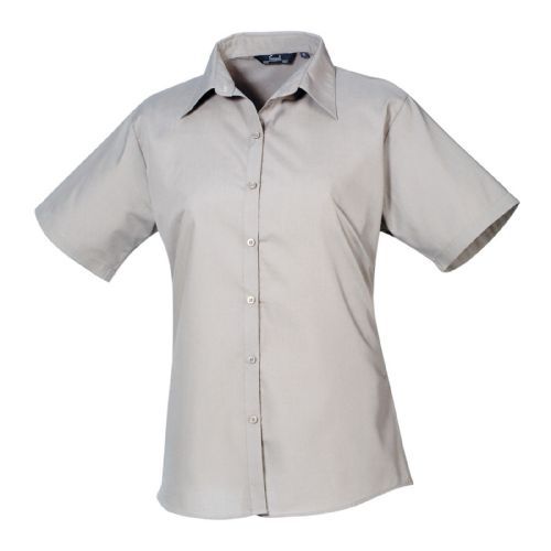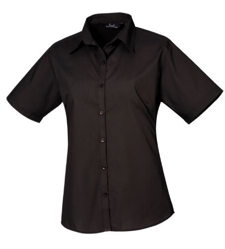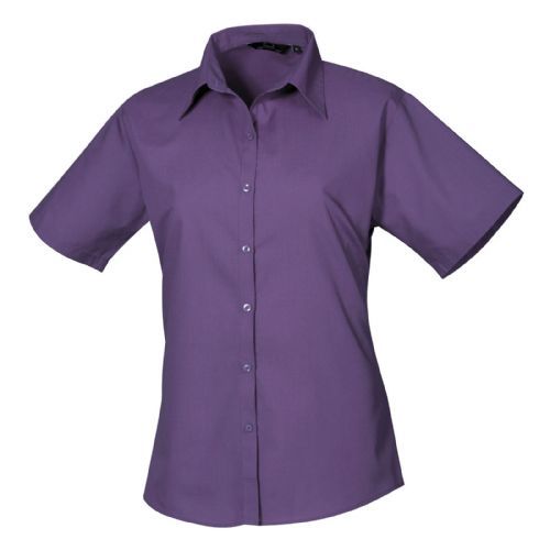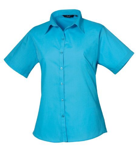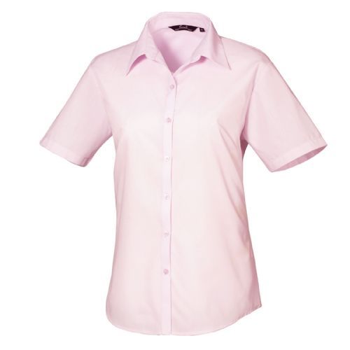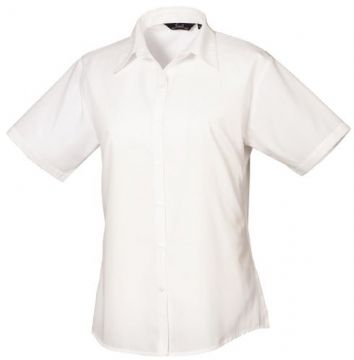 Womens Short Sleeve Poplin Blouse 65% Polyester 35% Cotton