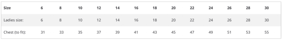 School uniform size guide