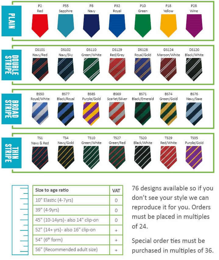 If you're interested in finding out more about our tie range, please contact our customer service team or your schools account manager.