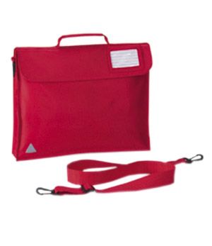 Book Bag with detachable adjustable webbing shoulder strap, internal zipped pockets, covered name card holder and reflective safety triangle on front.