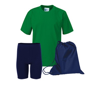 PE Kit comprises of Embroidered T-Shirt, 1 pair Fitted Shorts and an Embroidered PE Bag