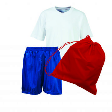 PE Kit comprises of Embroidered T-Shirt, 1 pair Shadow Stripe Shorts and an Embroidered Nylon Bag