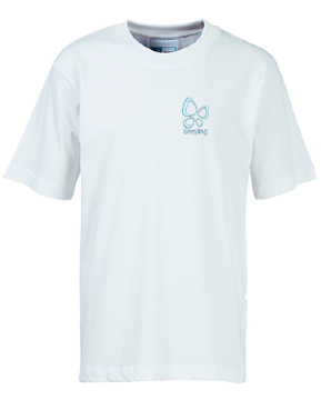 T-Shirt with ribbed neckband and open hemmed sleeves.