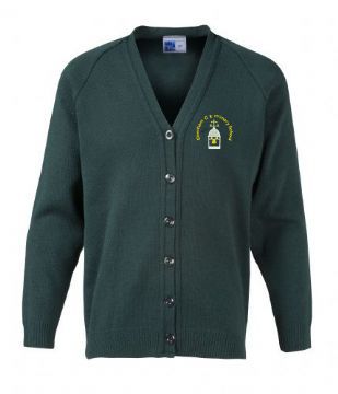 This knitted cardigan is a real school classic. The tough acrylic yarn has superb pill resistance, keeps its colour and holds its shape wash after wash.