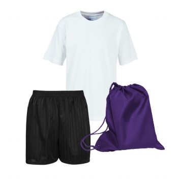 PE Kit comprises of Embroidered T-Shirt, 1 pair of Shadow Stripe Shorts and an Embroidered Nylon Bag