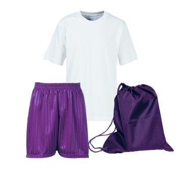 PE Kit comprises of Embroidered T-Shirt, 1 pair Shadow Stripe Shorts and an Embroidered Nylon Bag