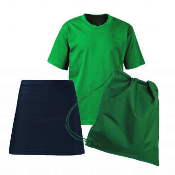 PE Kit comprises of Embroidered T-Shirt, 1 PE Skort and an Embroidered Nylon Bag