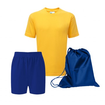 PE Kit comprises of Embroidered T-Shirt, 1 pair Shadow Stripe Shorts and an Embroidered Nylon Bag