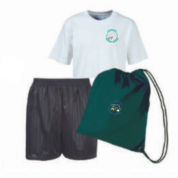 PE Kit comprises of Embroidered T-Shirt, 1 pair Shadow Stripe Shorts and an Embroidered Nylon Bag