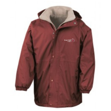 A jacket for all seasons. This coat has a built-in studded storm flap and waterproof foldaway hood, waterproof polyester with taped seams one side, with a cosy fleece reverse, offering all-round weather protection to keep your pupils warm and dry on their journey to and from school.