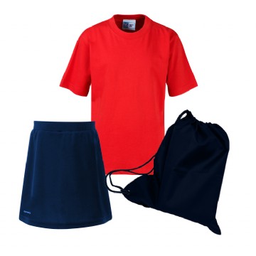PE Kit comprises of Embroidered T-Shirt, 1 skort and an Embroidered Nylon Bag