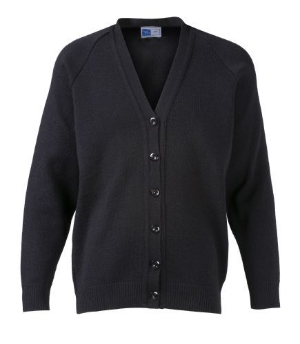This knitted cardigan is a real school classic. The tough acrylic yarn has superb pill resistance, keeps its colour and holds its shape wash after wash.