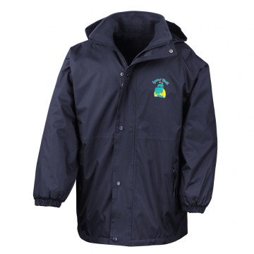 A jacket for all seasons. This coat has a built-in studded storm flap and waterproof foldaway hood, waterproof polyester with taped seams one side, with a cosy fleece reverse, offering all-round weather protection to keep your pupils warm and dry on their journey to and from school.