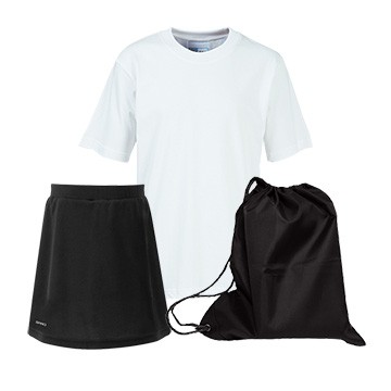 PE Kit comprises of Embroidered T-Shirt, 1 Skort and an Embroidered Nylon Bag
