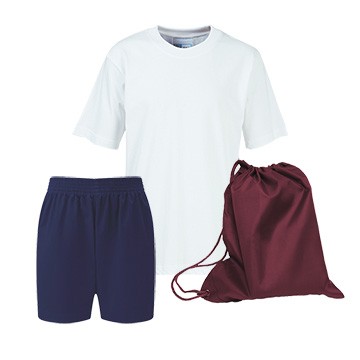 PE Kit comprises of Embroidered T-Shirt, 1 pair Poly Cotton Shorts and an Embroidered PE Bag