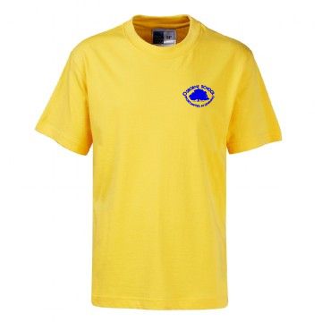 T-Shirt with ribbed neckband and open hemmed sleeves.