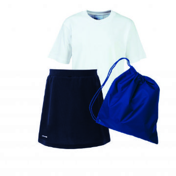 PE Kit comprises of Embroidered T-Shirt, 1 Skort and an Embroidered PE Bag
