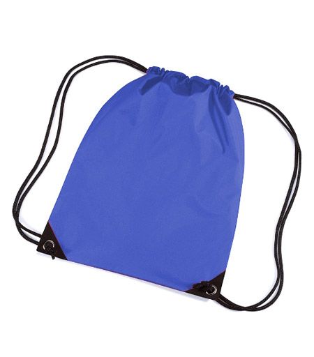 210 Denier Water Resistant Nylon Gymsac with drawstring carry handles on each side. Dimensions 45 x 34cm, Capacity 11 litres