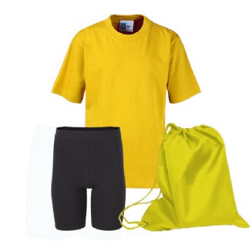 PE Kit comprises of Embroidered T-Shirt, 1 pair Fitted Shorts and an Embroidered Nylon Bag