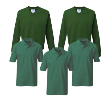 2 logo'd v-neck sweatshirts and 3 logo'd polos