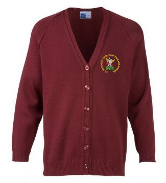 This knitted cardigan is a real school classic. The tough acrylic yarn has superb pill resistance, keeps its colour and holds its shape wash after wash.