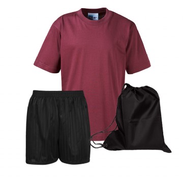 PE Kit comprises of Embroidered T-Shirt, 1 pair Shadow Stripe Shorts and an Embroidered Nylon Bag