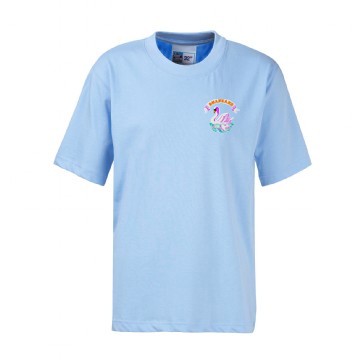 T-Shirt with ribbed neckband and open hemmed sleeves.