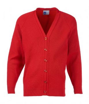 This knitted cardigan is a real school classic. The tough acrylic yarn has superb pill resistance, keeps its colour and holds its shape wash after wash.