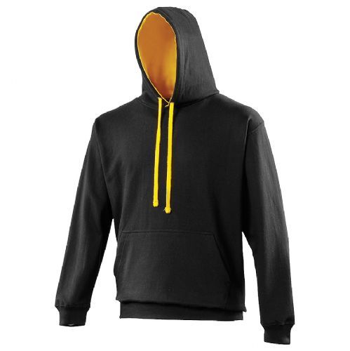 80% Cotton 20% Polyester Hooded Sweatshirt with contrast colour inner hood and contrast drawcords, kangaroo pouch pocket and ribbed cuffs and hem.