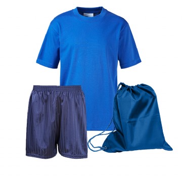 PE Kit comprises of Embroidered T-Shirt, 1 pair Shadow Stripe Shorts and an Embroidered PE Bag