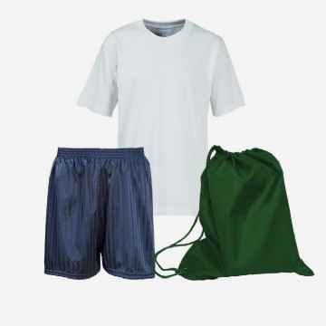 PE Kit comprises of Embroidered T-Shirt, 1 pair Shadow Stripe Shorts and an Embroidered Nylon Bag