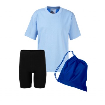 PE Kit comprises of Embroidered T-Shirt, 1 pair fitted Shorts and an Embroidered PE Bag