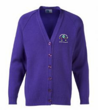 This knitted cardigan is a real school classic. The tough acrylic yarn has superb pill resistance, keeps its colour and holds its shape wash after wash.