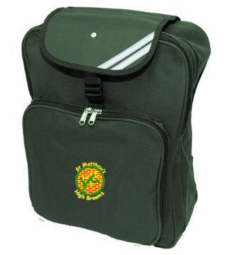 Junior Backpack with three zipped compartments, two larger ones and a small front pocket which includes a detachable pencil case and fixed pencil holder. Padded shoulder straps for a more comfortable fit. Top flap features reflective strips and clip fastening. Water bottle pocket (Bottle not included).